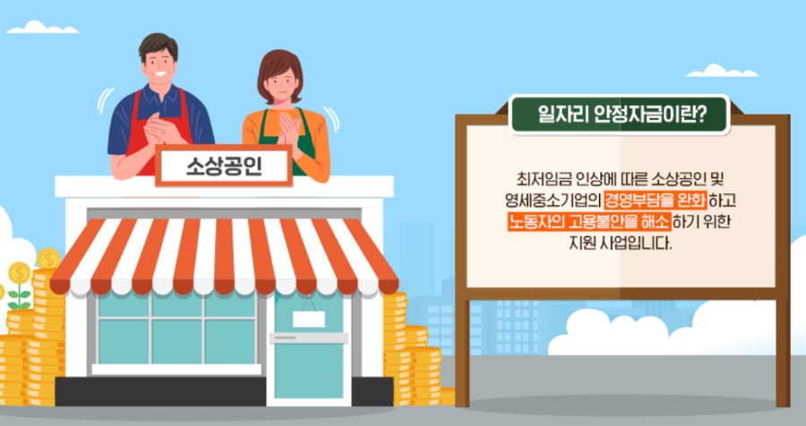 최근 몇년간 급격하게 상승한 최저임금, 그리고 아직 끝이 보이지 않는 코로나19의 여파로 자영업자, 특히 소상공인 여러분들의 고통이 어느때보다 적지 않습니다. 일자리안정자금이란 영세중소기업의 경영부담을 완화하고 노동자의 고용불안을 해소하기 위한 지원사업입니다.