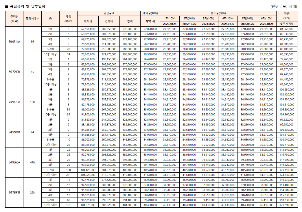 - * 층별(동호수별) 세부 공급금액은 사업주체의 입주자모집 공고문을 참고하시기 바랍니다.